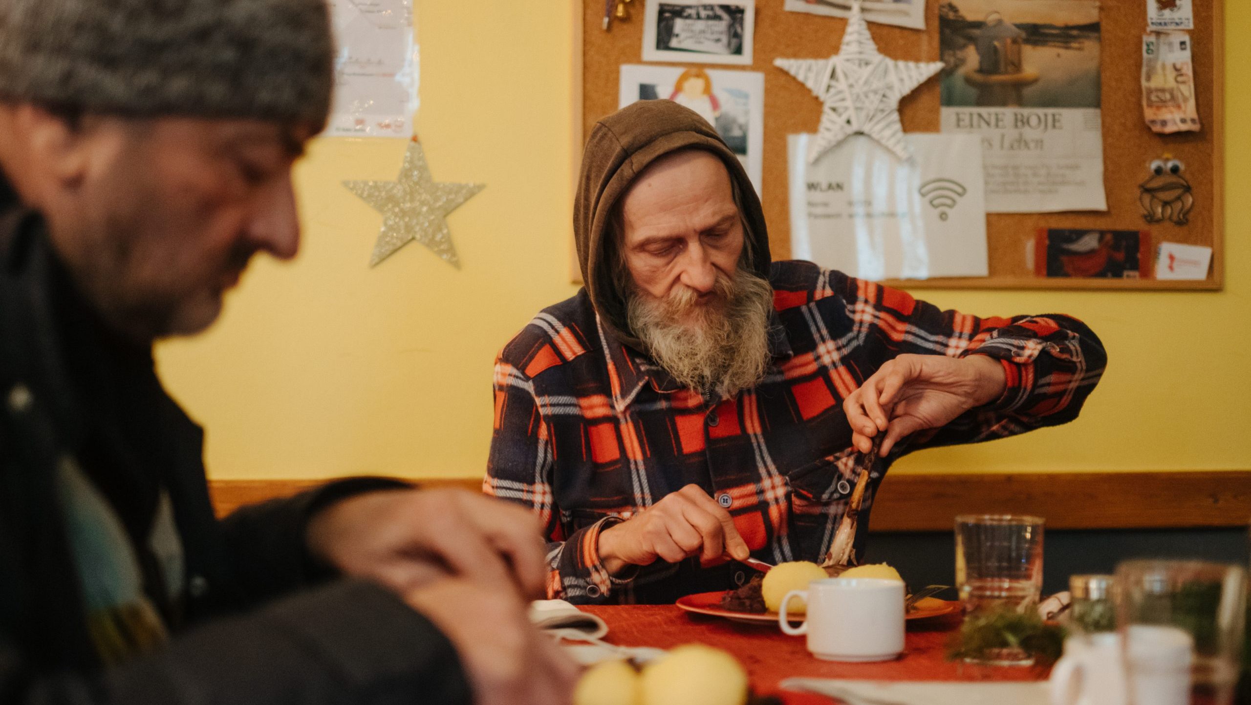 - warme Mahlzeit, Duschmöglichkeit, saubere Kleidung und medizinische Basisversorgung
