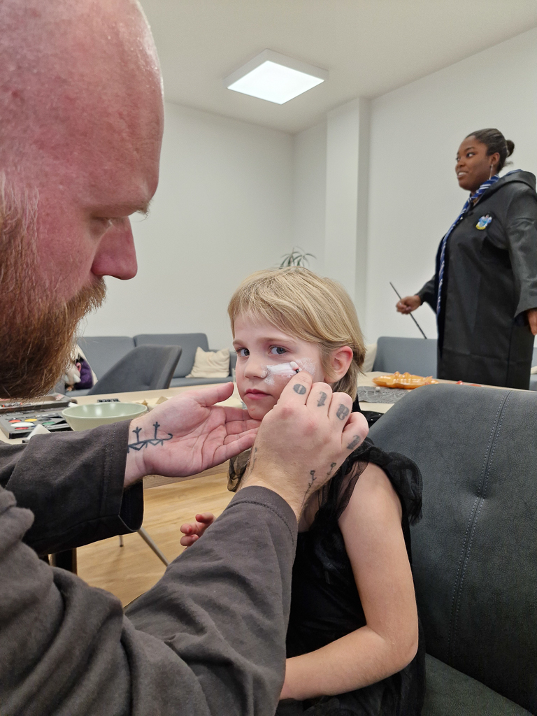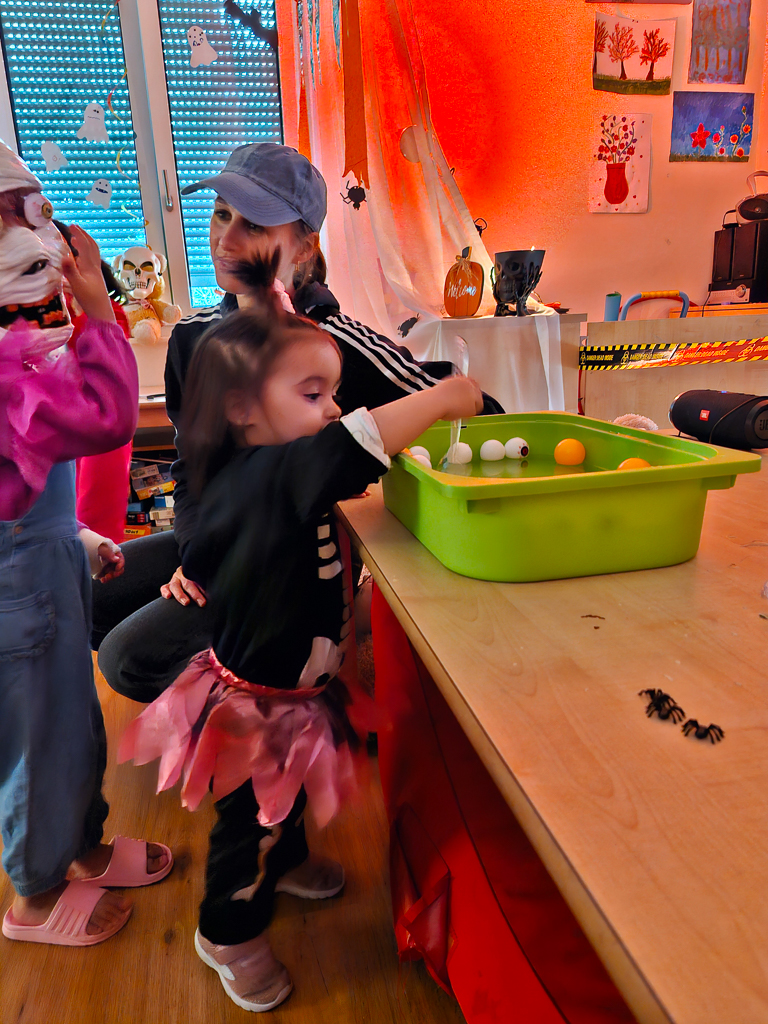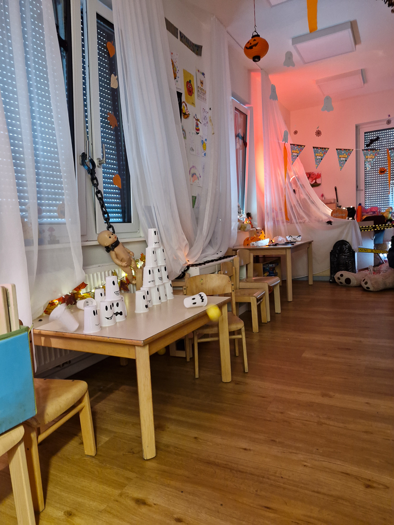 Ein Freiwilligenteam von act3 verwandelte das Kinderspielzimmer im Wohnheim Marzahn in eine schaurig-schöne Halloween-Party. Mit liebevoller Deko, Buffet und Spielen sorgten sie für strahlende Kinderaugen und ausgelassene Stimmung bei Groß und Klein.