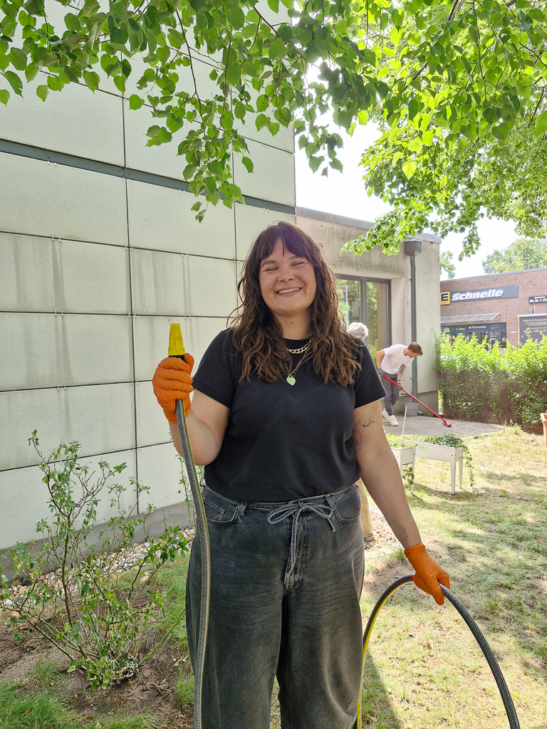 Elf Freiwillige des Second-Hand-Portals Vinted verwandelten die Kita Kunterbunt im Wedding in eine gepflegte und blühende Oase.