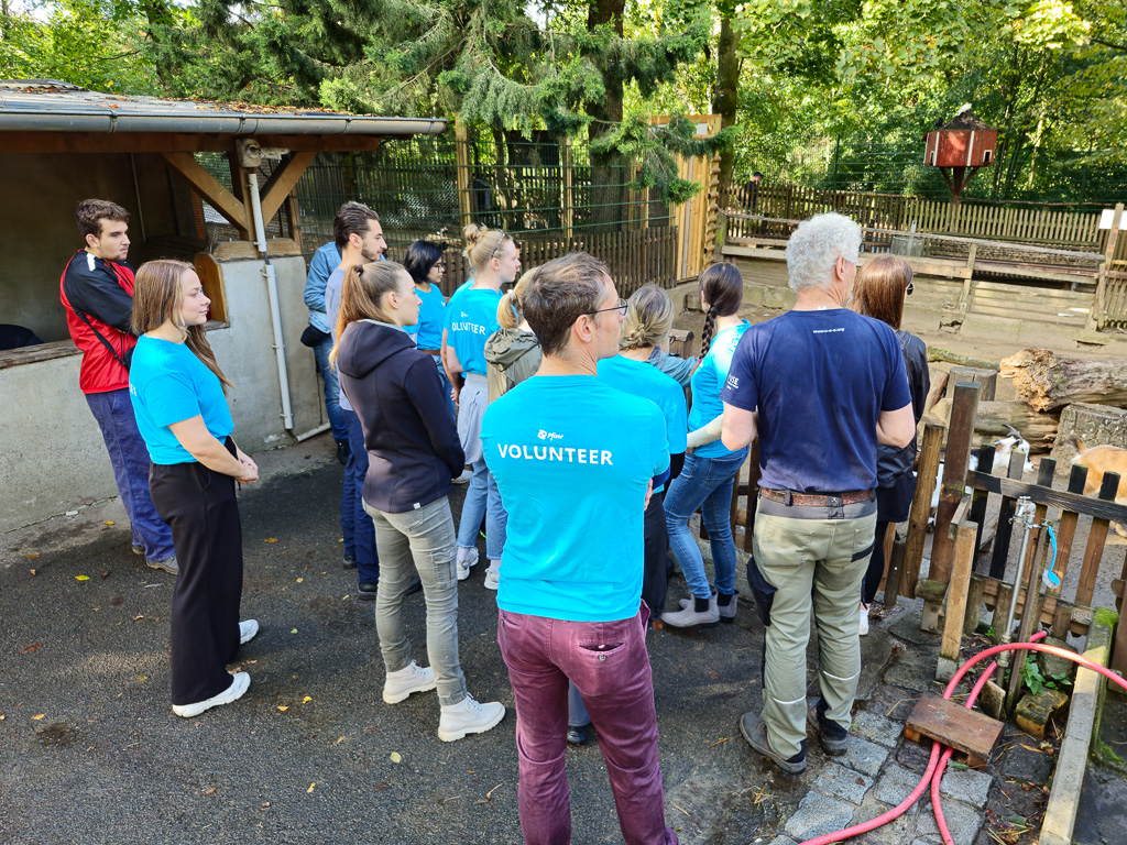 Das Pfizer-Team packte im Tierpark Neukölln kräftig an und verwandelte ein verwildertes Beet in einen gepflegten, nützlingsfreundlichen Bereich. Trotz angekündigtem Unwetter sorgten sie für Ordnung, neue Pflanzen und einen gelungenen Einsatz, der von Tierführung und Teamgeist begleitet wurde.