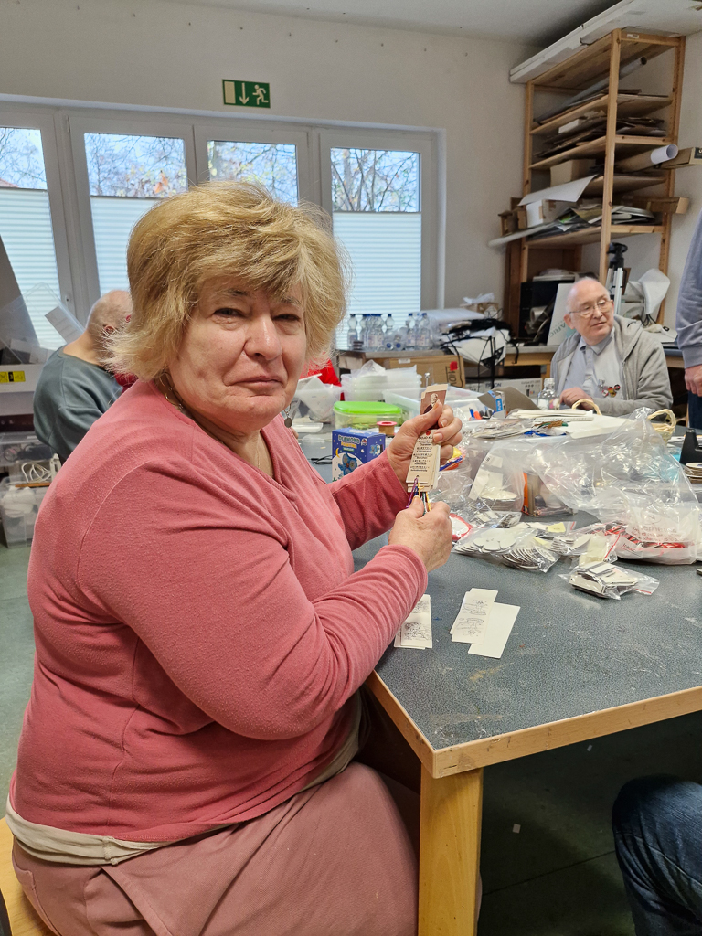 Ohrringe und Baumschmuck? Der perfekte Aufhänger für den Social Day im Joachim-Fahl-Haus! Denn im November steht die Adventszeit vor der Tür und in der Besonderen Wohnform im Wedding stellen die Bewohner*innen Schmuck her, der dann auf dem Adventsmarkt dankbare Abnehmer*innen findet. 2025 werden sie dabei vom engagierten Unternehmen Plentific unterstützt, das dieses wichtige Beschäftigungsfeld auch mit einer Spende fördert. Das Team entwickelt und betreut an regulären Tagen eine innovative Immobilienmanagement-Software und hat sich bereits im Vorjahr für das Unionhilfswerk engagiert.